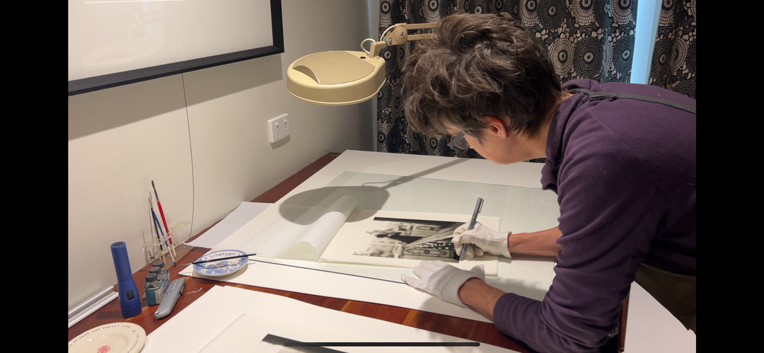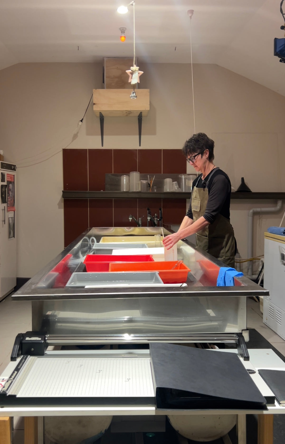 Handcrafted gelatin silver prints are made (by me) in my darkroom in Warburton in the beautiful Yarra Valley. Fresh mountain rain water is used in my processing of both film and paper photographs. Working in the darkroom is like being in a temple to me, it's a hallowed space and I lose all sense of time and space other than the immediate moment while I am in there. There is nowhere near the range of photographic papers available as there used to be however I use a beautiful high-silver-content paper from the Czech Republic - everything about this paper makes me happy including its occasional variances between batches.