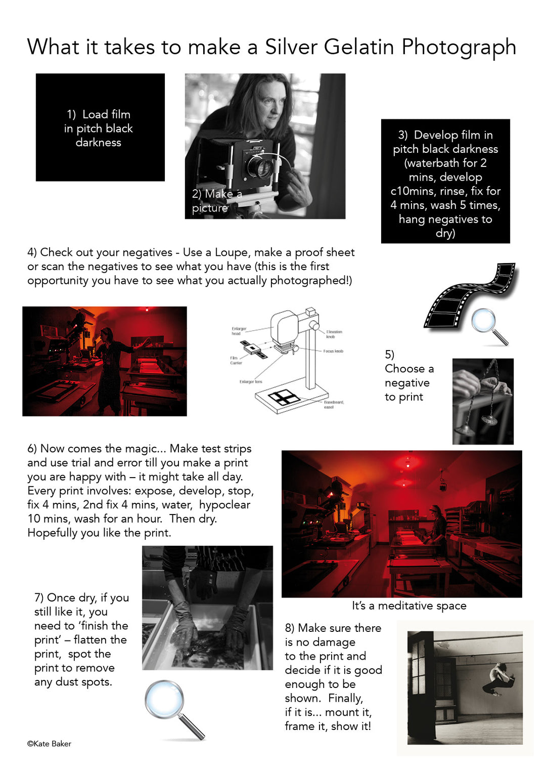 A little visual shows what it takes to make a Silver Gelatin photograph - and this is just the darkroom printing part… there are many steps both before and after this!